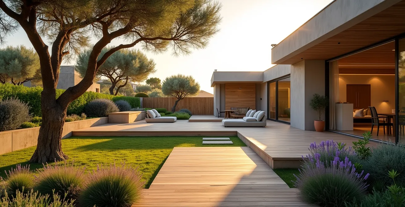 Por el contrario, en un clima mediterráneo como el de Alicante, la batalla se libra contra el sol y la sequía. Aquí, el valor no está en un césped verde que consume recursos ingentes, sino en la xerojardinería inteligente. Las prioridades son: sistemas de riego por goteo programado, la creación de zonas de sombra mediante velas o arbolado estratégico (olivos, algarrobos), y el uso de plantas autóctonas de bajo consumo hídrico como lavanda o romero. Un jardín que demuestra ser sostenible y de bajo coste hídrico es un poderoso argumento de venta.