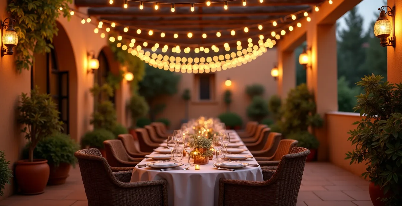 La clave del éxito reside en combinar la iluminación en capas con texturas y elementos sensoriales. Mientras las guirnaldas a 2200K proporcionan la luz ambiental perfecta, son los detalles los que elevan la experiencia. Unos cojines de lino, un mantel de tela agradable al tacto, el aroma de unas plantas aromáticas y una suave música de fondo son los cómplices perfectos de tu coreografía lumínica. Tus invitados no solo verán un espacio bonito, sino que lo sentirán. Este enfoque multisensorial es lo que diferencia una simple cena de una experiencia memorable.