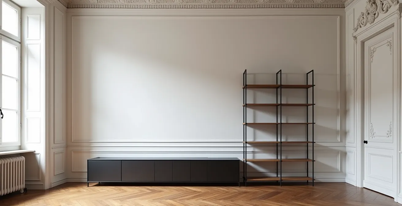 - Cómo combinar estanterías modulares contemporáneas con molduras del siglo XIX sin disonancia