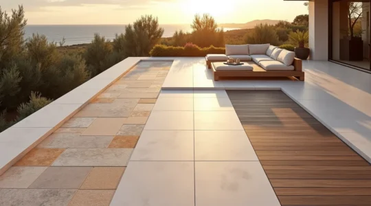 El clima español varía significativamente entre regiones: la amplitud térmica del interior peninsular, la humedad del norte atlántico o la salinidad de zonas costeras exigen materiales específicos. Un pavimento de madera natural que funciona perfectamente en Galicia puede agrietarse en Andalucía, mientras que ciertos gres porcelánicos oscuros acumulan calor extremo en verano mediterráneo, volviéndose intransitables descalzo.